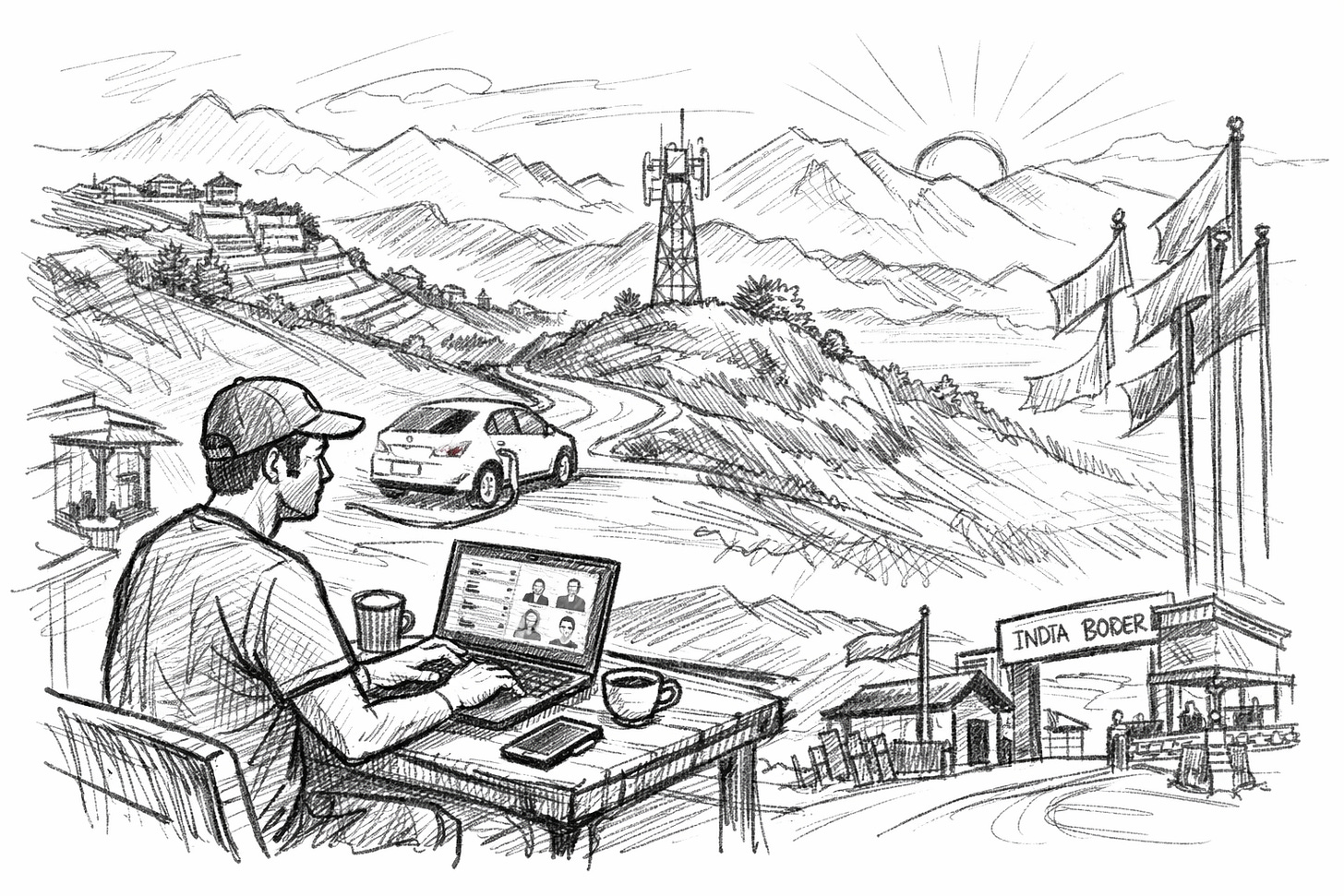 We had a call at 6 pm, so we crossed into India briefly and returned before the call. We attended the meeting calmly from the vehicle. Being in a city area helped. Mobile data worked well.